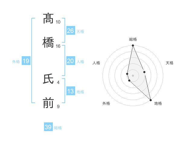 髙橋 氏前さんの総格は39画の5点!