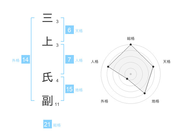 三上 氏副さんの総格は21画の5点!