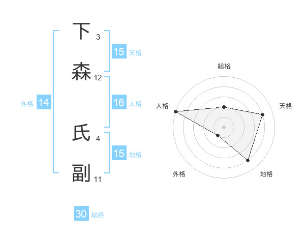 下森 氏副さんの総格は30画の2点!