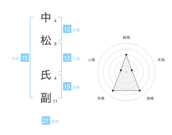 中松 氏副さんの総格は27画の3点!