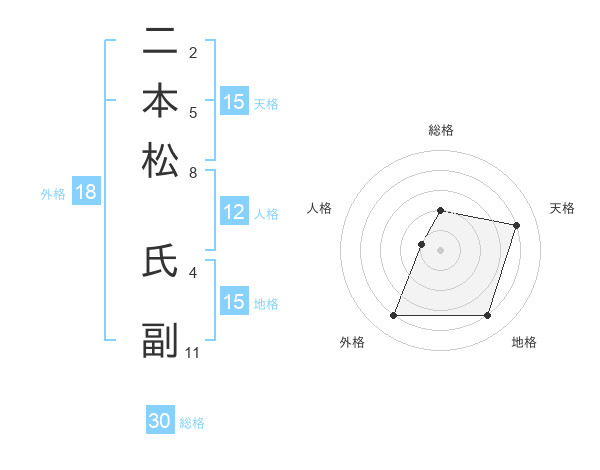 二本松 氏副さんの総格は30画の2点!