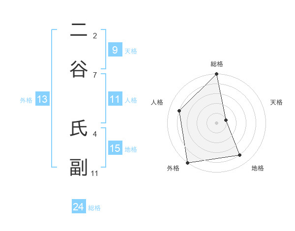 二谷 氏副さんを姓名の画数から五運を鑑定