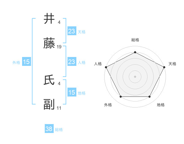 井藤 氏副さんの天格は23画の5点!