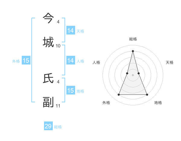 今城 氏副さんの総格は29画の4点!