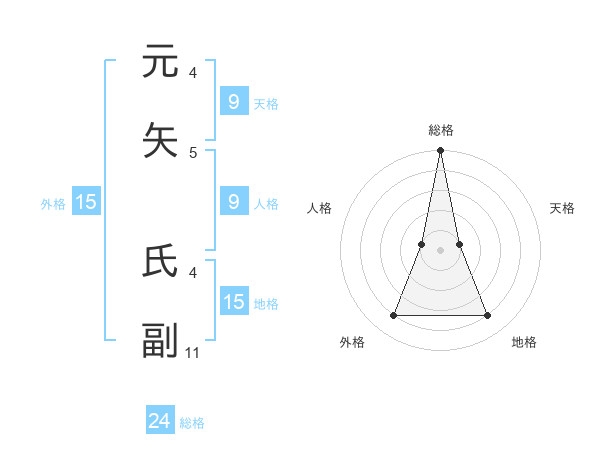 元矢 氏副さんの地格は15画の4点!