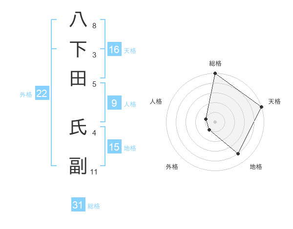 八下田 氏副さんを姓名の画数から五運を鑑定
