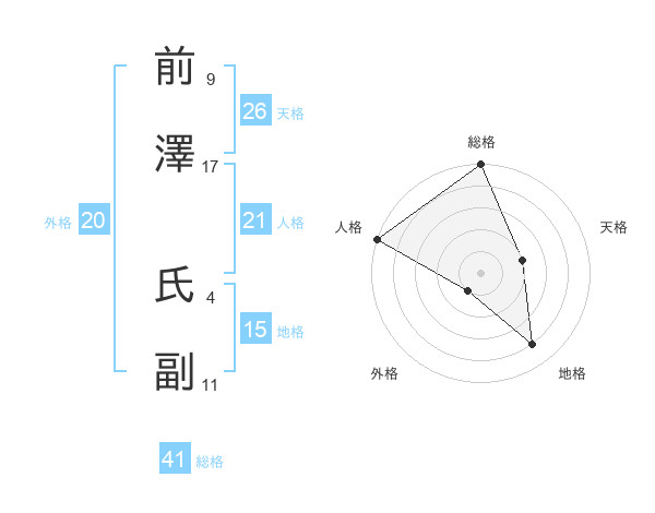 前澤 氏副さんを姓名の画数から五運を鑑定