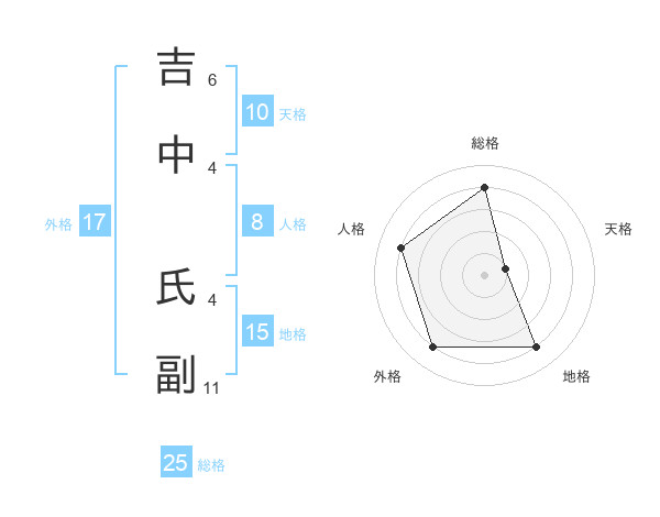 吉中 氏副さんの総格は25画の4点!