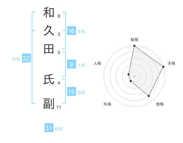 和久田 氏副さんの総格は31画の5点