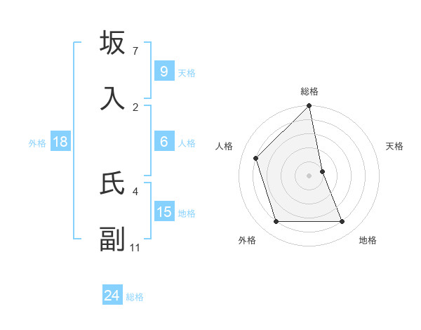 坂入 氏副さんの総格は24画の5点!