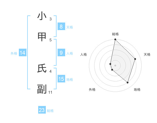 小甲 氏副さんの総格は23画の5点!
