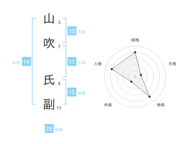 山吹 氏副さんを姓名の画数から五運を鑑定