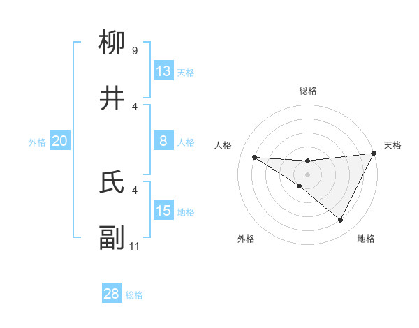 柳井 氏副さんを姓名の画数から五運を鑑定
