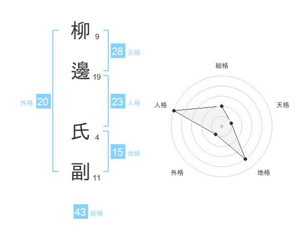 柳邊 氏副さんの総格は43画の2点!