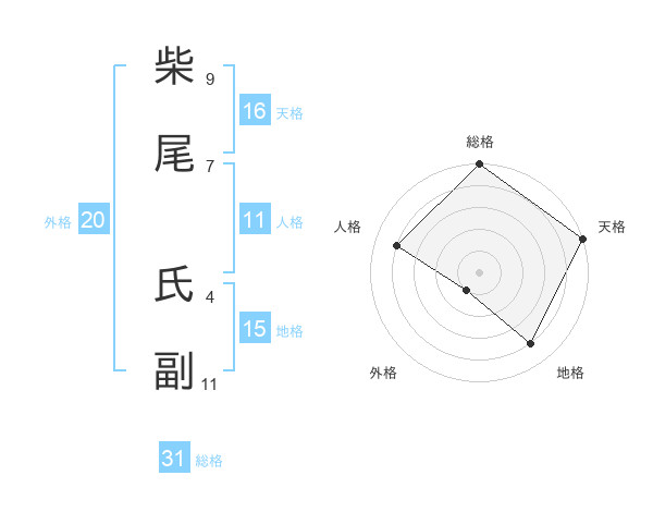 柴尾 氏副さんの総格は31画の5点!
