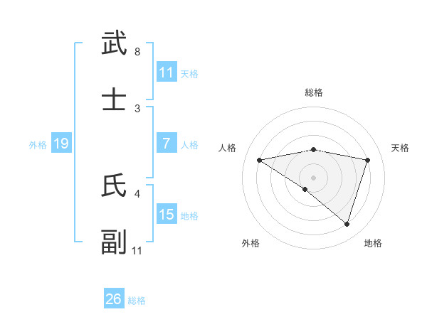 武士 氏副さんの天格は11画の4点!