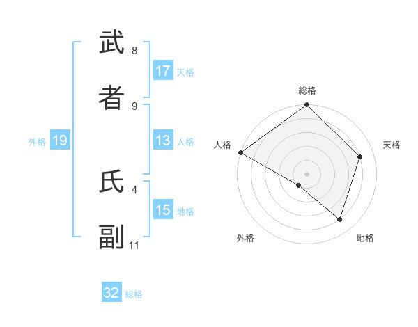 武者 氏副さんの天格は17画の4点!