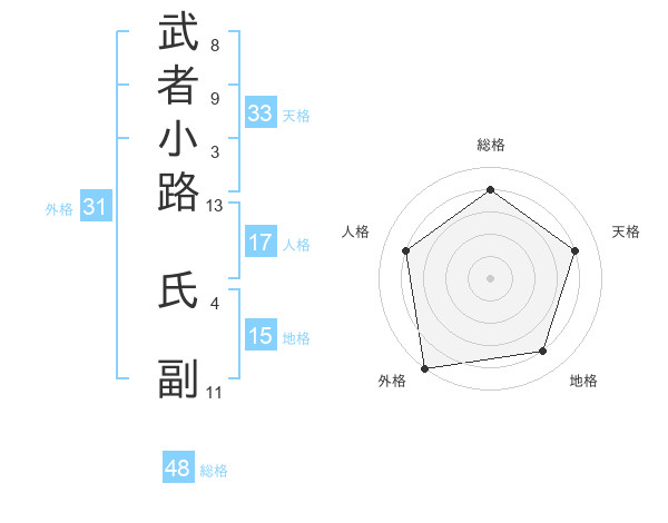 武者小路 氏副さんの人格は17画の4点!