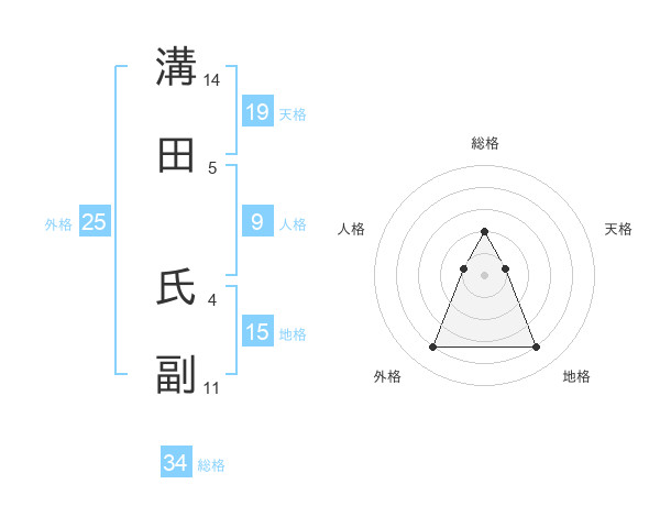 溝田 氏副さんの総格は34画の2点!