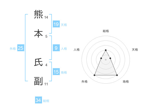 熊本 氏副さんの総格は34画の2点!