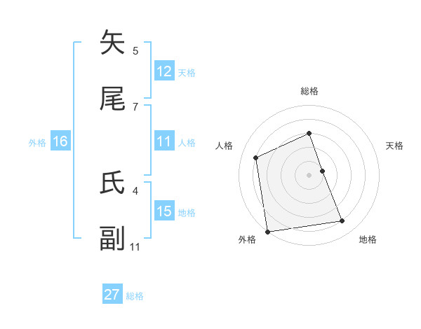 矢尾 氏副さんを姓名の画数から五運を鑑定
