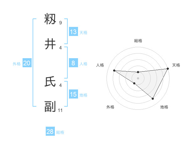 籾井 氏副さんの総格は28画の1点!