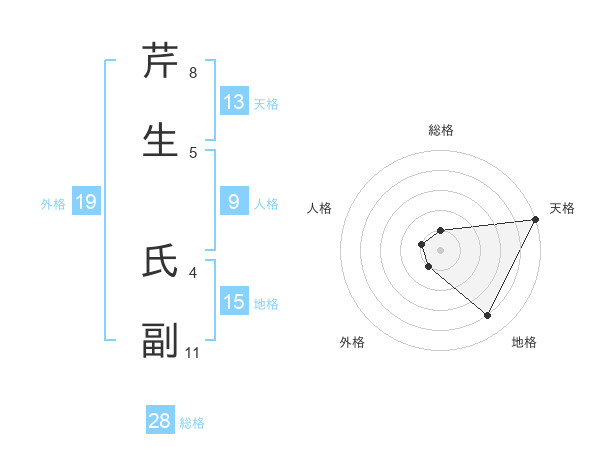 芹生 氏副さんの天格は13画の5点!