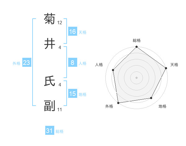 菊井 氏副さんを姓名の画数から五運を鑑定