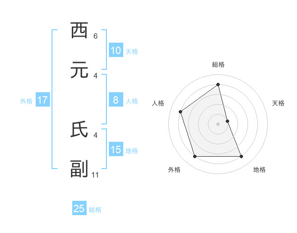 西元 氏副さんの総格は25画の4点!