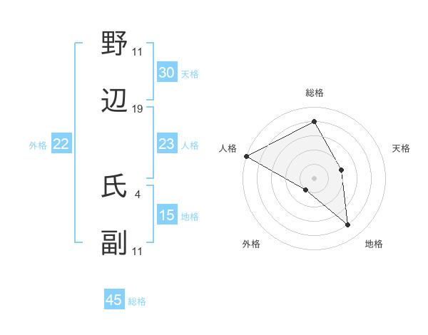 野辺 氏副さんを姓名の画数から五運を鑑定