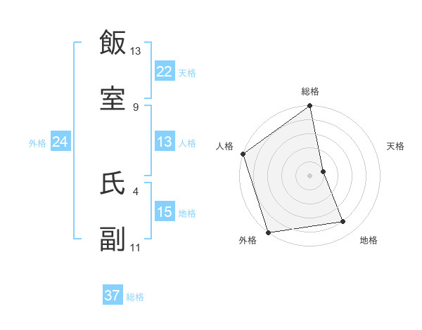 飯室 氏副さんの総格は37画の5点!