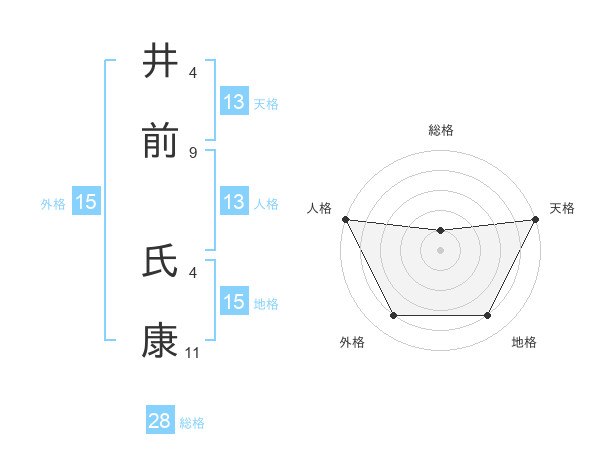 井前 氏康さんの総格は28画の1点!