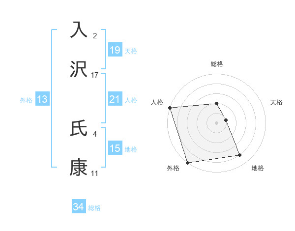 入沢 氏康さんの天格は19画の1点!