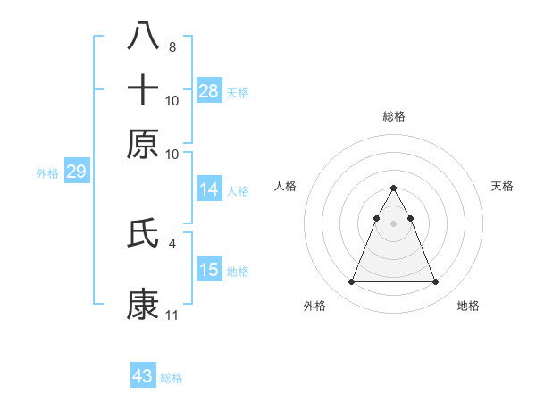 八十原 氏康さんの総格は43画の2点!