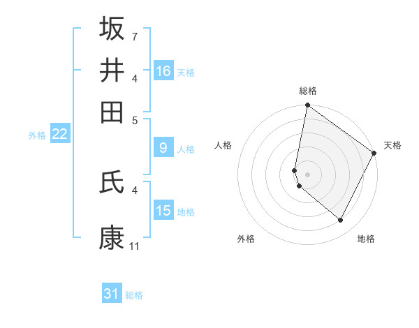 坂井田 氏康さんを姓名の画数から五運を鑑定