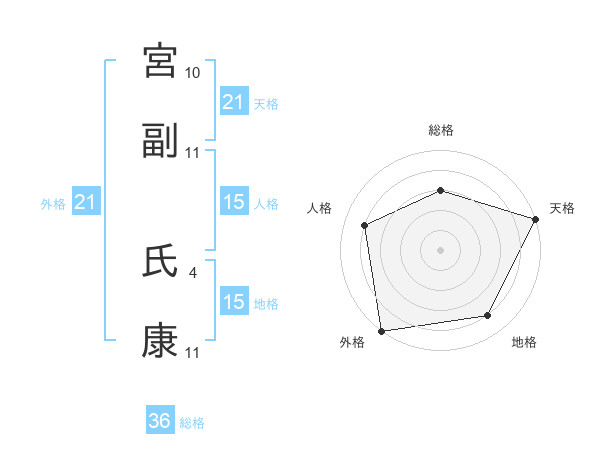 宮副 氏康さんの天格は21画の5点!