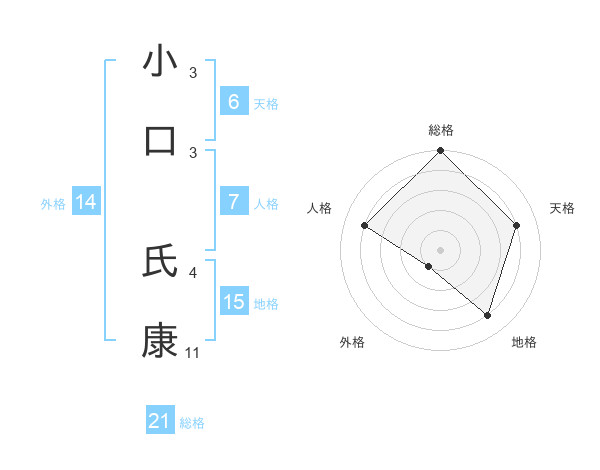 小口 氏康さんの総格は21画の5点!