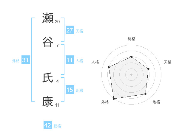瀬谷 氏康さんの総格は42画の3点!