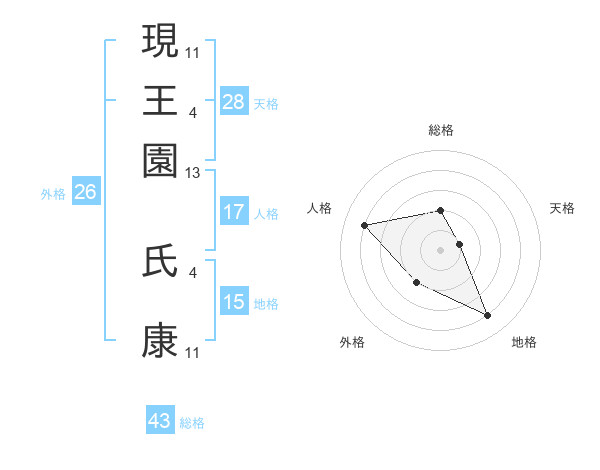 現王園 氏康さんを姓名の画数から五運を鑑定