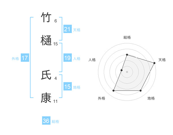 竹樋 氏康さんの総格は36画の3点!