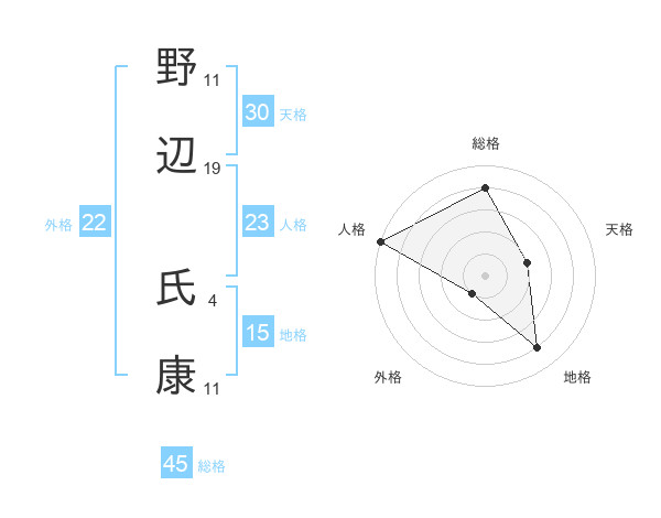 野辺 氏康さんを姓名の画数から五運を鑑定