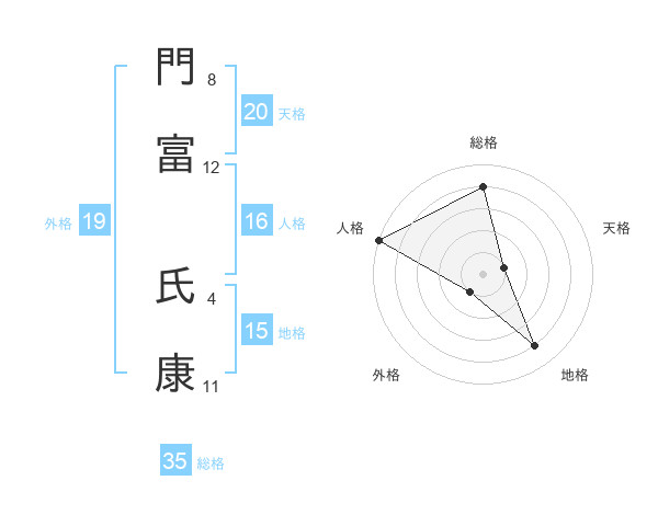 家系が持つ宿命的な運勢を表します。祖先から受け継いだ苗字ですので自分の力が及びません。家柄を象徴します。