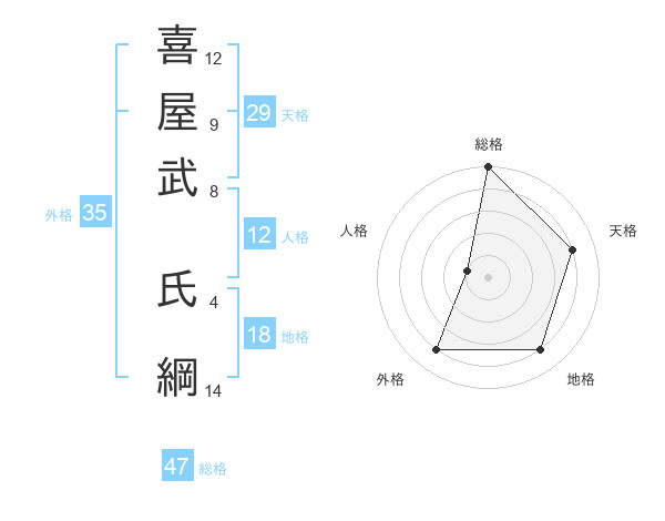 喜屋武 氏綱さんを姓名の画数から五運を鑑定