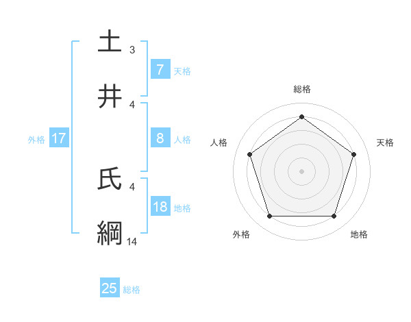 土井 氏綱さんを姓名の画数から五運を鑑定