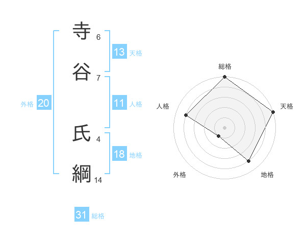寺谷 氏綱さんの総格は31画の5点!