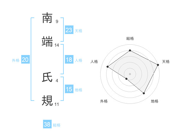 南端 氏規さんの総格は38画の4点!