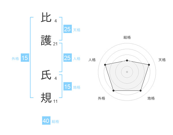 比護 氏規さんの天格は25画の4点!