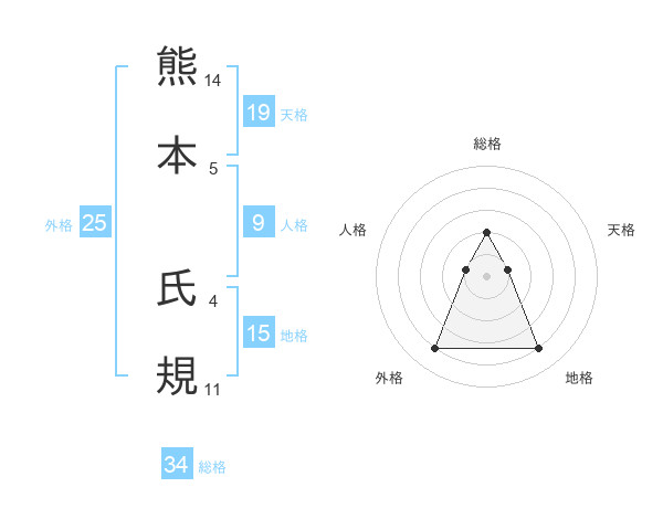 熊本 氏規さんの総格は34画の2点!