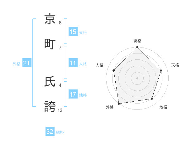 京町 氏誇さんの地格は17画の4点!