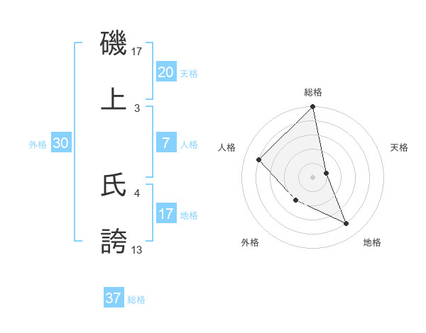 磯上 氏誇さんを姓名の画数から五運を鑑定